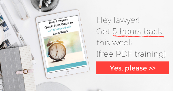 - Join the free Masterclass for Lawyers, ” 7 (non-techy) Secrets to a Smoother Legal Practice (and banishing that overwhelmed anxious feeling).” There I'll share with you my favorite tips to live and work better to maximize your time and reach your goals.